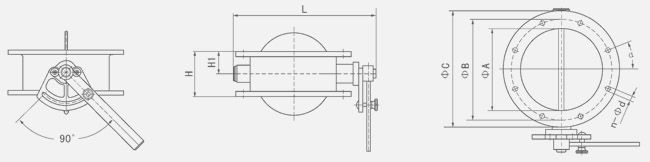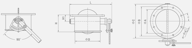 注:1、蝶閥的高度及法蘭尺寸也可根據(jù)用戶要求制作。