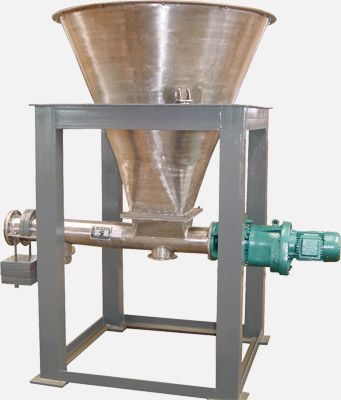 出料螺旋機與供料的稱重料斗剛性地聯結為一體,對其進行稱重是根據單位時間內重量損失量,將實際給料速率與設備給料速率進行比較,由可編程序控制器控制變頻調速器,從而控制出料螺旋的出料量,使給料速率始終準確地符合設定值。而在短時間的加料過程中,出料裝置借助重力式工作期間存儲的控制信號,按容積式原理工作。