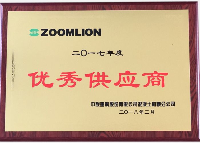 2018年2月7日,中聯(lián)重科混凝土機械公司召開供應(yīng)商年會,我公司被授予2017年度中聯(lián)重科優(yōu)秀供應(yīng)商。