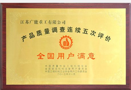您當前的位置:首頁 >> 公司新聞 >> 2013年11月12日~15日,我公司被授予“產(chǎn)品質(zhì)量調(diào)查連續(xù)五次評價全國用戶滿意”。
