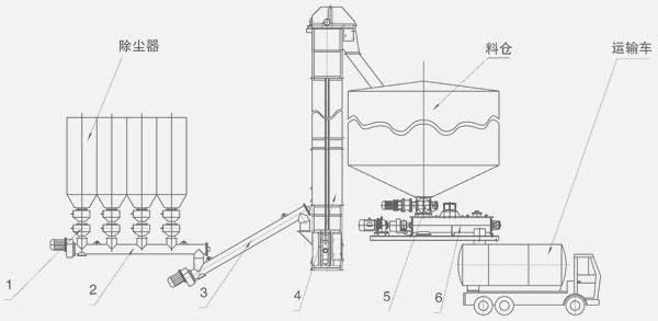 4.斗式提升機(jī); 5.物料旋閥; 6.YJS加濕機(jī).